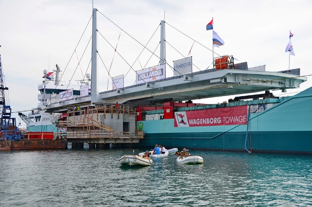 April 17 the Swing Bridge was loaded out from a shipyard in the Netherlands onto the transport cargo vessel Marietje Andrea which departed the Netherlands on April 19 for the cross-Atlantic voyage. The vessel arrived on May 03 and transited into the Simpson Bay Lagoon on the same day.