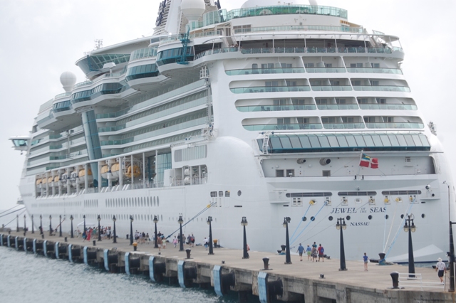 Good news for cruise tourism stakeholders in St. Kitts.The 90,000-ton Jewel the Seas, which has a passenger capacity of 2,500, began making its stop at Port Zante today, becoming the second ship to berth during the summer months. The Royal Caribbean cruise vessel, which made its inaugural call to St. Kitts in November 2011, arrived from St. Maarten this morning (Monday) with 2,432 passengers and a crew of 850. It later sailed for Antigua.