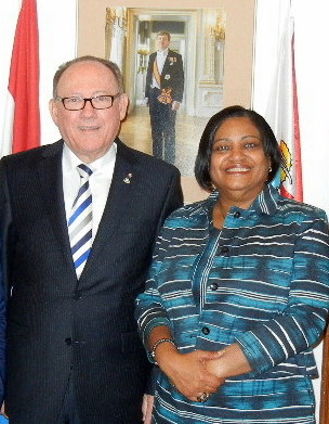 Voges, who was accompanied at the meeting by the director of his cabinet, Perry Geerlings and Carol Voges also of the St. Maarten House in The Hague, explained the functions of the Minister Plenipotentiary and briefed LaBega on the recent talks the St. Maarten representatives have been having with the Dutch government, including transport.