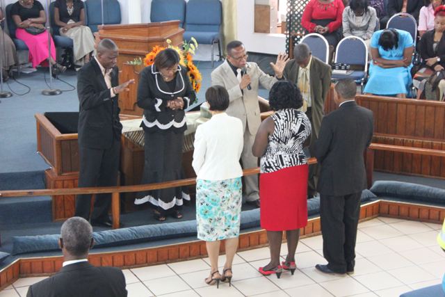 The Prime Minister of St. Maarten the Honorable Sarah Wescot Williams and the Minister of Education, Culture, Youth and Sports the Honorable Patricia Lourens were amongst various civil servants and government officials who received special prayer blessings from Pastor Wycliffe Smith at the New Testaments Baptist Church. Pastor Smith prayed for the Wescot-Williams III Cabinet and wished all much strength.