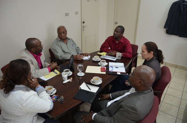 PHOTO: Minister Hon. Maurice Lake (4th from left) listening attentively to a representative of the Chamber of Commerce & Industry. Also present in the meeting were members of the Minister’s cabinet. DCOMM Photo