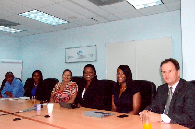 In the photo: Left to Right, Steve Duzanson – Commercial Manager NV GEBE, Sjadira Gaari – Corporate Comm. Officer NV GEBE, Mavis Albertina – Member National Committee Inauguration, Anenda Zaandam – Chairperson OCI St. Maarten, Emilia Thomas – Member OCI St. Maarten, Andre Hoeneveldt – Member OCI St. Maarten.