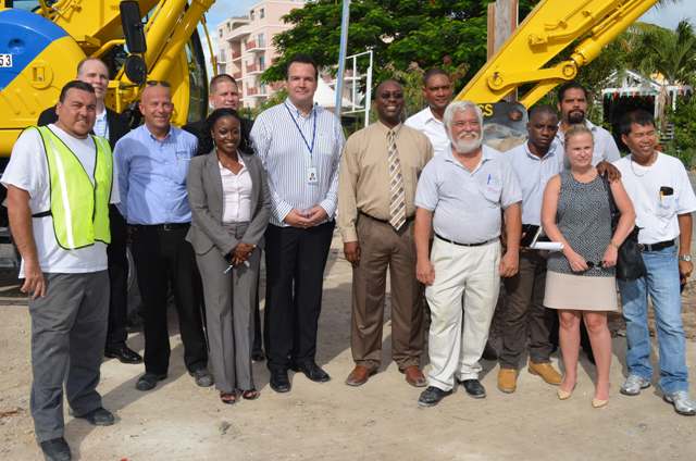 PHOTO CUTLINE: Minister Hon. Maurice Lake (7th from left) standing with representatives from the American University of the Caribbean School of Medicine, members of his Cabinet and representatives from the contractor. DCOMM Photo