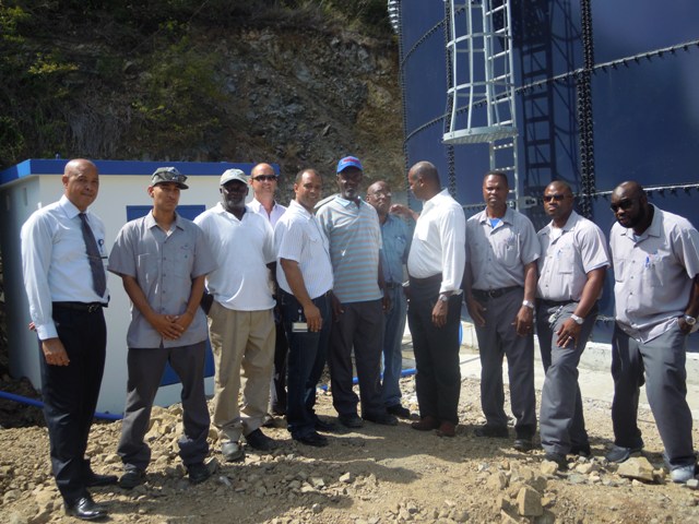 Minister of Public Health Social Development & Labor, Cornelius De Weever, responsible for the production and distribution of drinking water, on Monday September 16, 2013 visited the tank site in Pointe Blanche to officially –take into service– the first of two new tanks for storage of drinking water.