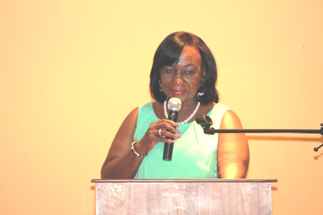 PHOTO CUTLINE: Minister of Education Hon. Patricia Lourens-Philip addressing the conference attendees. DCOMM Photo
