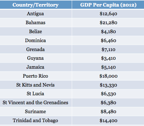 Trinidad and Tobago is next at $14,400, followed by St Kitts and Nevis, which, despite being the smallest country in the region, has a per capita GDP of about $13,330, according to the data.