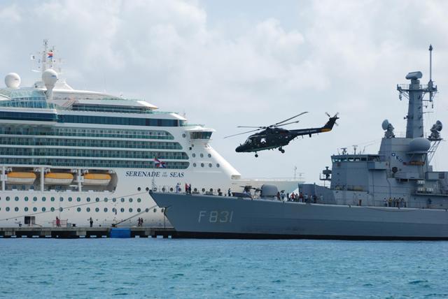 One of the ships that can be visited is HNLMS Amsterdam (A836). This is the last replenishment ship serving with the Royal Netherlands Navy. The Amsterdam is operating for the Coast Guard in the vicinity of St. Maarten. To conduct the Coastguard tasks, the Amsterdam has a detachment of personnel from the Coast Guard Substation St. Maarten embarked. Together (ship and Coastguard personnel) they patrol the waters around Sint Maarten, Saba and Statia and conduct frequent inspections on shipping towards and from the islands. The helicopter is used for surveillance flights for which the ship, other Coastguard assets or partners can respond.