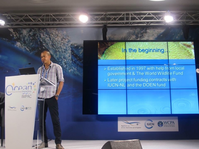 Despite being severely understaffed and underfunded and faced with issues related to poaching, climate change and coastal development, the Nature Foundation and the Man of War Shoal Marine Protected Area was able to show measured success since its establishment on the 30th of December 201o. Travel and accommodation for the Nature Foundation to the world’s largest Marine Protected Areas Congress was made possible through the support of the Dutch Caribbean Nature Alliance (DCNA) and the World Wildlife Fund.