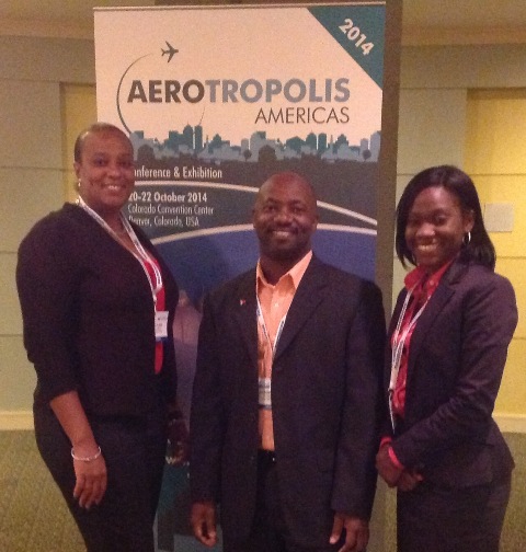 The SXM delegation at Aerotropolis Americas Conference, L-R: Michael Lake, Manager, Accounting & Reporting Department, Anastacio Baker, Quality Assurance Manager, and Kalifa Hickinson, Corporate Communications Specialist. (SXM photo)
