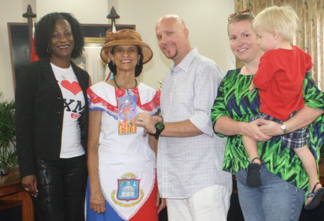 Caption: Prime Minister Wescot-Williams, Mr. Johnson and Family and Member of the National Organizing Committee Emilia Thomas