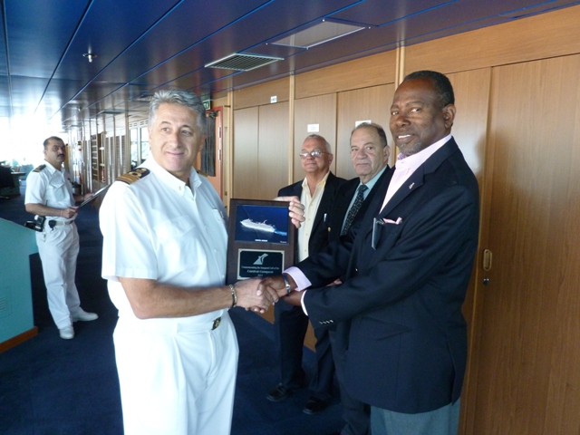 Peters, Williams and Mezas who were presented with plaques by the captain thanked the captain for the cruise lines continued interests and confidence in the destination. They pointed out that the port and the destination overall is always looking ahead and trying to do our best to keep cruise passengers and crew members interested in returning to the island.