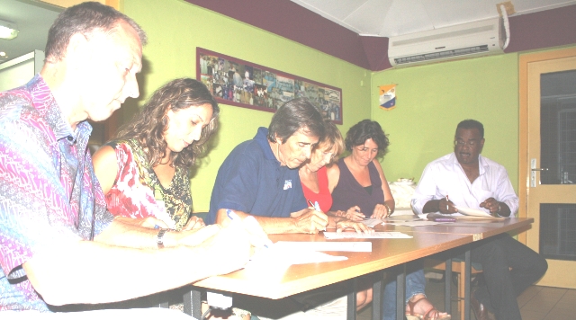 Kralendijk – Last Wednesday representatives of vocational education institutes and education related institutions on Bonaire, Sint Eustatius and Saba committed themselves with their signatures to a list of agreements. The signing of the agreements marked the finalization of a three day conference on vocational education. The goal of this conference was to reach agreement on a list of measures, that must be taken to enable all Caribbean Netherlands vocational education institutes to comply with the legal frameworks and reach the basic quality level according to European Netherlands standards before the year 2016. On the picture f.l.t.r. director Hemmie van Xanten of Saba Comprehensive School, director Elyane Paul of ROA (Raad voor onderwijs en arbeidsmarkt), director Leen de Jong of the Gwendoline van Putten School (Sint Eustatius), unitdirector mbo of Scholengemeenschap Bonaire Dinie Wijnmaalen, director Inge Berben of Fundashon Forma (Bonaire) and sr. project leader secondary and vocational education RCN/OCW Nolly Oleana.