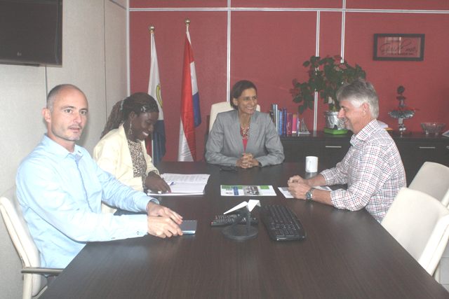 Caption: Prime Minister Wescot-Williams with BAK Director Mark Arnold, Project Manager Okama Brook and UN Consultant Tom Woods