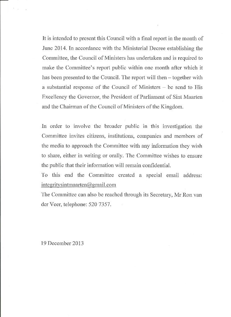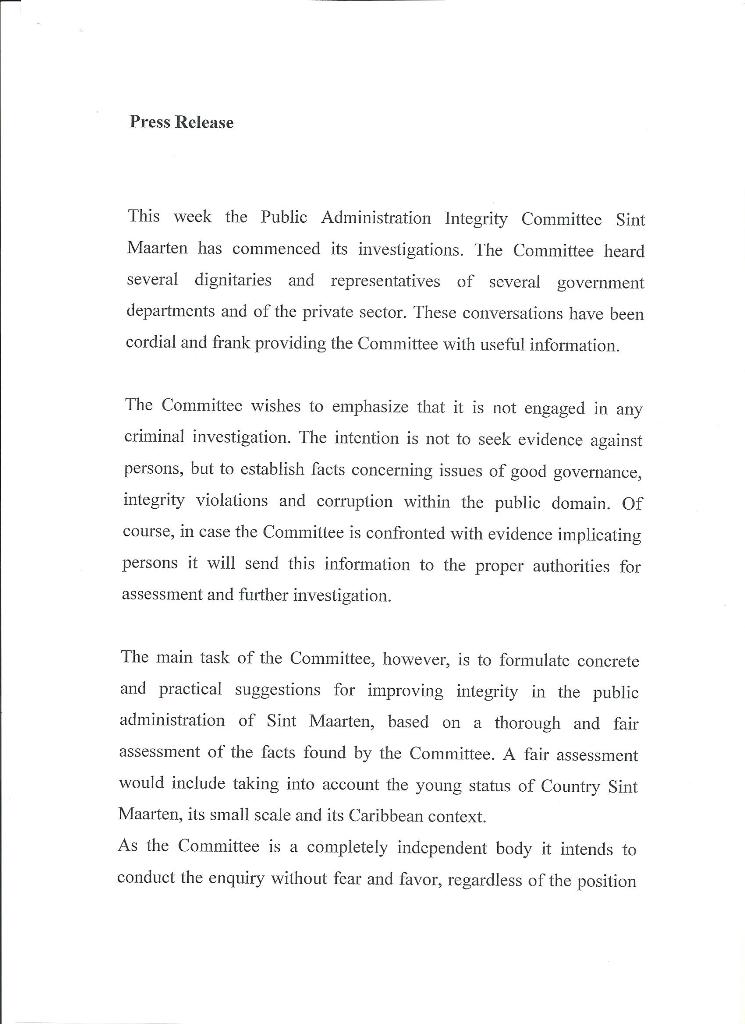 • Public Administration Integrity Committee St. Maarten starts investigations