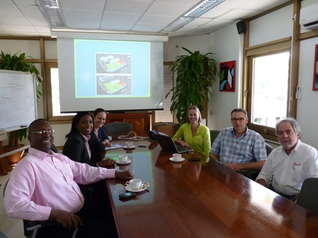 PHOTO CUTLINE: Minister Hon. Maurice Lake (left), SMMC Erica van der Horst (3rd from right), SMMC Director Kees Klarenbeek (2nd from right), and Chairman of the SMMC Board Izzy Gertsenbluth (1st from right), and members of the Ministers Cabinet.