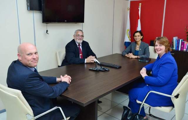 The Prime Minister of St. Maarten the Honorable Sarah Wescot-Williams received a courtesy visit from Mrs. Colette Delaney, Chief Administrative Officer at First Caribbean International Bank and W.M (Pim) van der Burg Managing Director of FCIB in the Dutch Caribbean at her Cabinet on Wednesday. The two executives, accompanied by Mr. Robert Judd, Head of Corporate Banking & Country Head, exchanged information regarding the bank with the PM and updated on various activities.