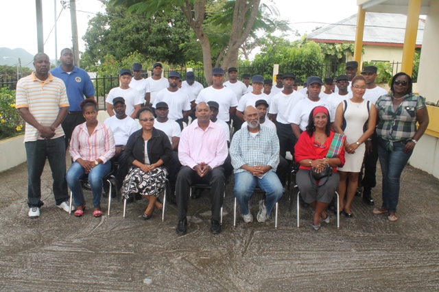 PHOTO CUTLINE:Justice Academy cadets were thanked last week Friday by the Minister of Public Health Hon. Cornelius de Weever (4th from left) for their assistance in the country’s campaign to combat mosquito breeding sites. Also in the picture is staff from CPS along with officials from the Justice Academy. DCOMM Photo
