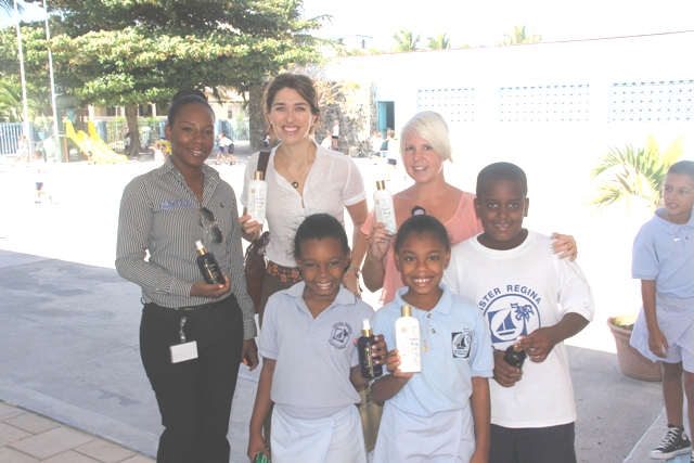 Recently Sister Regina School in Simpson Bay received mosquito repellent from the Cabinet of Ministry ECYS, the St. Maarten Harbor Group of Companies and SXM Cosmetics. The repellant "Bug Off" and "Baby Bug Off" is natural and made in Sint Maarten, and can be found at all pharmacies. Nalia Muriel is the owner and operator of SXM Cosmetics.