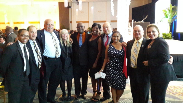 PHOTO CUTLINE: Gala dinner at Cruise Conference Miami where port officials had the opportunity to discuss preps for FCCA 2014 to be hosted by St. Maarten. In the photo are officials from the Port of St. Maarten including supervisory board members, and representatives from the business community. President of the FCCA Michel Paige (4th from left), Minister of Tourism & Economic Affairs Hon. Ted Richardson and CEO Mark Mingo (4th from right).