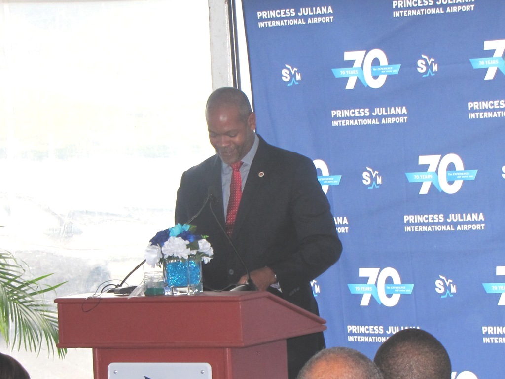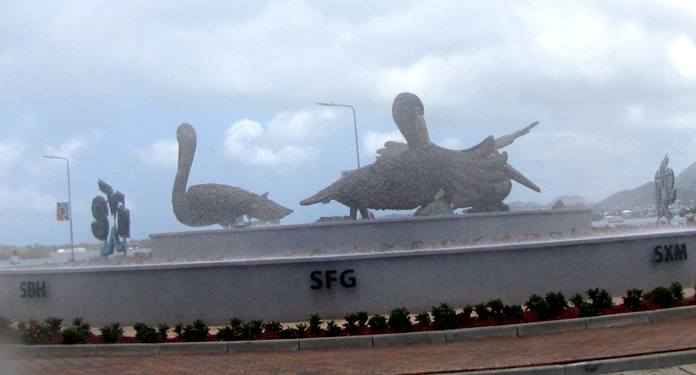 The SXM Airport on March 21st 2014, unveilied the ambassadors to their round-a-bout, the Pelicans, in celebration of their 70th anniversary, and then handed it over to  Government and the people of St.Maarten.