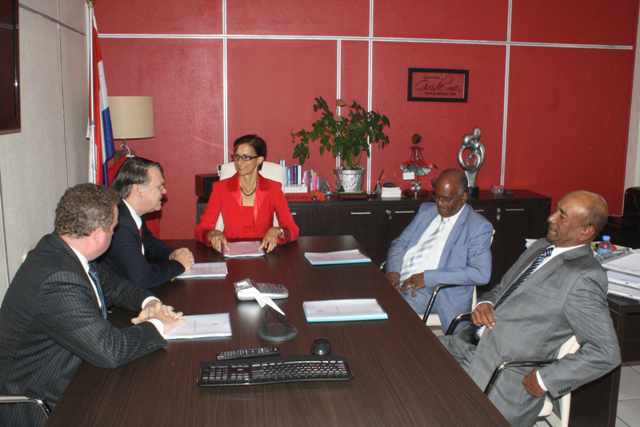 The Prime Minister of St. Maarten the Honorable Sarah Wescot-Williams received the final report from the Integrity Committee Public Administration on Monday at her Cabinet at the Government Administration Building. The report was presented to the Prime Minister by the Minister of Justice the Honorable Dennis Richardson, the Head of the Constitutional Court the Honorable Judge Bob Wit and Attorney/Member of the Committee for Financial Supervision CFT.