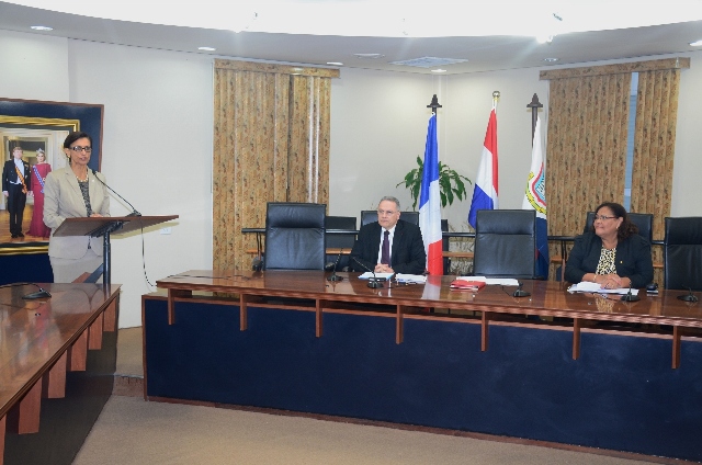 The European Trans-border Cooperation (ETC) Operational Program is a program of cooperation between both sides of the island to work on various mutually important projects for both sides of the island. Prime Minister Wescot-Williams stated that administrations over the years on a technical level have been making agreements on how to move various areas forward for the people of St. Maarten. “Today is an important milestone on the history of both sides of St. Maarten, signing an agreement which started when I signed a basis for cooperation in 2006 based on the Treaty of Concordia. Now this LoI will highlight where we will be working with St. Martin North on projects that can fit with the requirements of ETC funding. We have developed an operational program so that we can keep up with accountability to the European Union. For many months our technical departments have been looking at draft Operational Programs and have outlines projects, which in our opinion has fit the scope, and we can submit for funding. One of the requirements that we have is that we put the draft operational program available and we have made this public which is now accessible on the Governments website www.sintmaartengov.org. The French Authorities have also made sure to do the same.