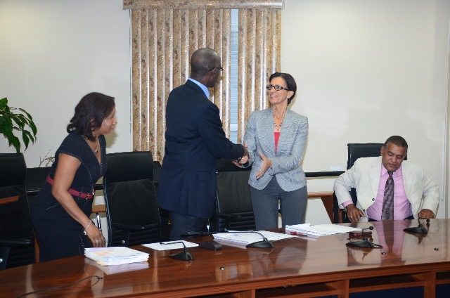 On Tuesday the Prime Minister of St. Maarten the Honorable Sarah Wescot-Williams signed the Fund Management Agreement between the St. Maarten Development Fund and the Government of St. Maarten for the funding of crucial NGO’s in the community. The St. Maarten Development Fund (SMDF) was established to ensure that Foundations that were funded by Dutch Funding Organization AMFO continued to receive necessary funds. AMFO ceased funding and left many NGO’s at the risk of loosing the necessary funding. Prime Minister Wescot-Williams stated that through the hard work and cooperation of all entities the Foundations, including After School Activity Organizations and Foster Home and Orphanages Organizations, are now able to receive the necessary funding to continue with their respective mandates; “When we learned of the cessation of the AMFO programs and funding there was a slight consternation due to many NGO’s having come to rely on that funding coming from the Dutch Government. At that time the Government needed to very urgently establish the organization to fill the gap from which AMFO left off in order to ensure that there would be continuity in their programs. In order to fulfill this there was established the St. Maarten Development Fund Foundation chaired by Richelda Rodrigues-Emmanuel. Richelda, who comes from a background well suited for the SMDF having served on the Reda Social Foundation that funded many projects on island is joined by Joy Arnell and Marinka Gumbs as Board Members of the SMDF. The management of the SMDF is done through Keith Franca, who comes with a long list of management skills,” stated Prime Minister Wescot-Williams.