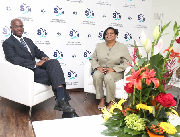 “It was indeed a very special opportunity to officially welcome His Excellency Governor Holiday back to the Princess Juliana International Airport,” said Managing Director Regina LaBega who succeeded Holiday at the helm of affairs at SXM airport.