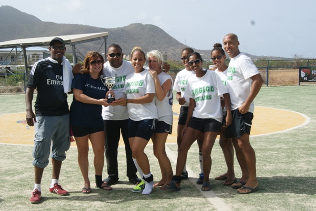 The Soualiga Soccer Association hosted their 3rd Annual Business Soccer Tournament on Saturday July the 4th, 2015, at the Cruyff Court in Belvedere. A total of six teams participated in the tournament showing great enthusiasm and skills. All teams had to have a minimum of three females on the field at all times during the 6- a side game. The teams were assisted on the field by the Soualiga ladies whenever necessary, as the goal of the tournament was to promote a healthy, fun and active way of team building, while stimulating female participation in sports, more specifically in soccer.