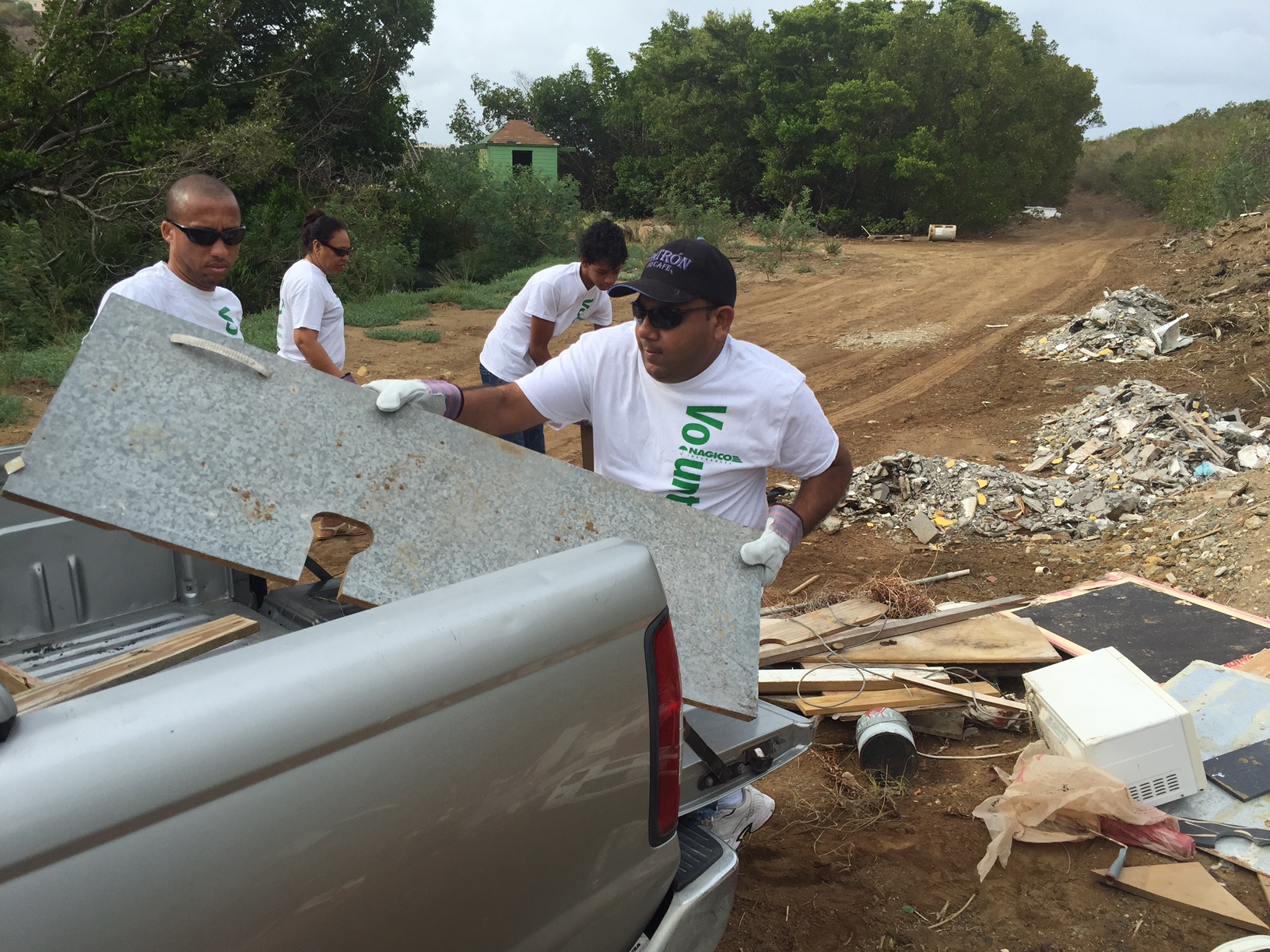 Nine volunteers from NAGICO Insurances assisted the Sint Maarten Nature Foundation over the weekend with the clean-up of Mangrove areas surrounding the Little Bay Pond over the weekend. The participants of the cleanup also noticed that someone, more than likely a construction contractor, dumped building material and household items in the vicinity of the Bird Watching Hut at the Pond; “During this exercise we were very saddened to see that someone dumped construction material and household items such as a water heater, microwave, bottles of oil and a vacuum cleaner at the Mangroves around Belair Pond. With the help of this great group of volunteers we cleaned up the material and the mangrove areas but we urge the community to not engage in this illegal activity. We have reported the incident to the authorities and hopefully we can figure out who purposefully damaged the environment so that they can receive the necessary fines,” commented Tadzio Bervoets of the Nature Foundation.