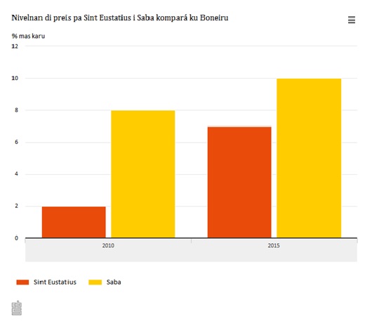 In 2015, consumer prices on Saba and St Eustatius are respectively 10 and 7 percent higher than on Bonaire. The previous price level survey was conducted in 2010. Consumer prices on Saba and St Eustatius were then respectively 8 and 2 percent higher than on Bonaire for the average basket of consumer products. Saba still is the most expensive island for consumers, as the price level survey conducted by Statistics Netherlands (CBS) shows.