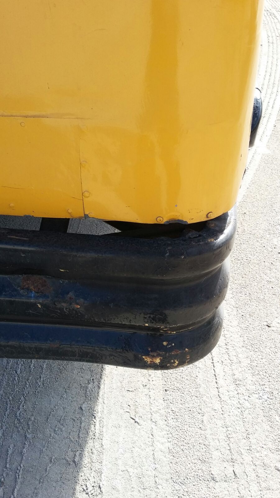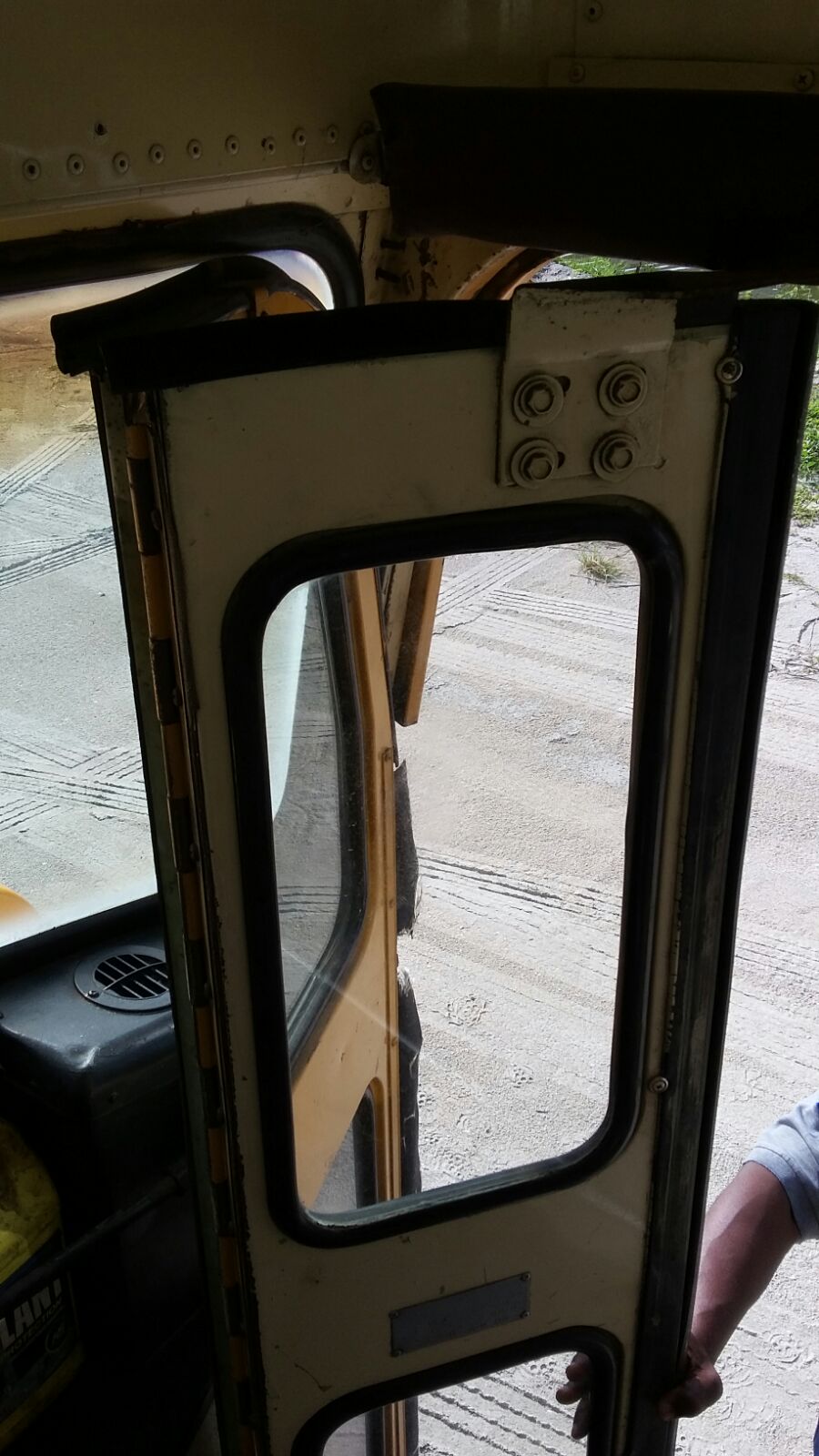 The bus was ordered to pull off the road and was controlled. During the control several failures were observed, the rear bumper was in need of repair, the rear right-hand side glass was cracked, the entrance door was also found not to be functioning properly. At this point the Controllers proceeded to investigate further and found that the vehicle documentation was also not in order.