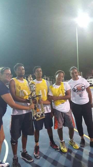 The day ended with a 3-on-3 basketball competition for ages 12-17 and 18-26 and a 3-point shootout where the winning teams received trophies and a gift certificate from Klass Electronics. All participants received medals. The players were cheered on by the crowd in the stands. Winners in the age category 12-17 were Ralph Coulanges, Thyrese White and Imar Tanis; winners in the age category 18-26 were Andrew Laclé, André Laclé and Leiland Huyyhue; winner of the 3-point shoot-out was Chiquon Hodge while the MVP trophy went to Lamar Halley.