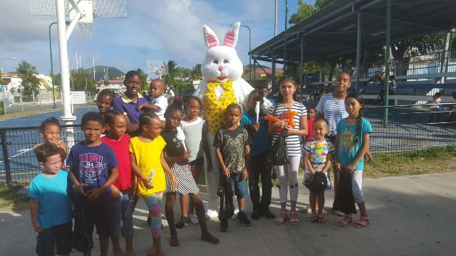 SIMPSON BAY – After two weeks of meaningful community building activities, the last Saturday of March concluded the Shoot Hoops, Not Guns project in Simpson Bay with a fun filled day of various activities highlighted by the 3-on-3 district basketball tournament. For the kids there were cotton candy, a bouncy castle, balloon artist, family games and the Easter egg hunt with the Easter bunny walking in the midst of the children. Domino tables as well as food and drinks were also available.
