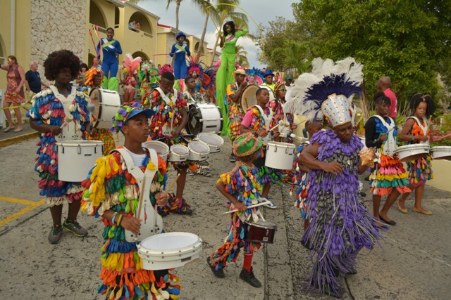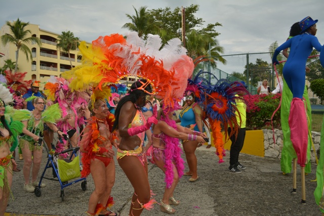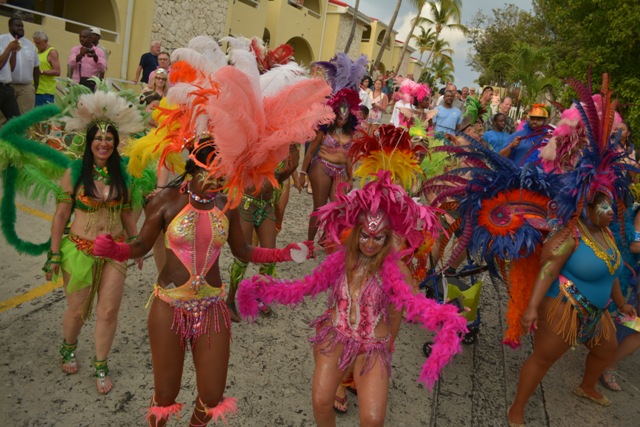 A colorful and unexpected Carnival troupe chipped and danced its way through Simpson Bay Resort on Tuesday, led by the energetic rhythms of drum band Generation New Status. The participants, guests at the guests at the resort, have been coming to the island for 10 to 30 years , and had never taken part in a Carnival Parade. All reveled in the experience.