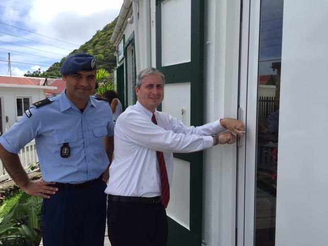 On Monday may 9th, 2016 the Police Station in Windwardside was officially inaugurated following the opening act by Island Governor Jonathan Johnson and the blessing by father Ranolfo. Also present at the openingĀ were Chief of Basic Police Care Saba, Ibrahim Ekiz and Deputy Chief of Police BES, Simone Steendijk. The Station is located across from the Big Rock Supermarket and next to Saba Snack.