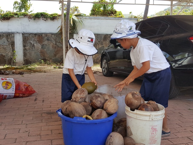 picking fruits of coconuts; mangoes and ackee trees; transplanting
