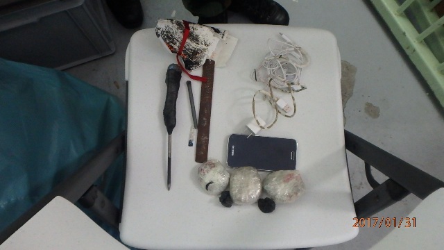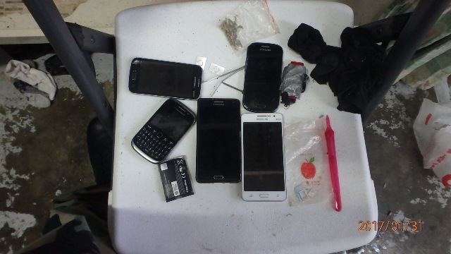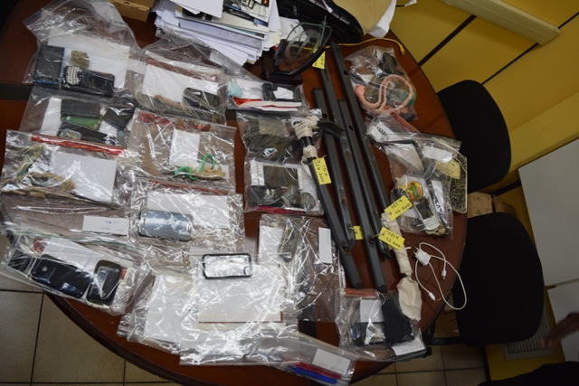 P1310065The search started at approximately 07.30 a.m. and lasted until 05.00 p.m.  During the intense search numerous cellular phones, self-made weapons, drugs and a firearm were found. The weapon was confiscated and a further investigation is on the way to determine as to how this weapon got into the prison.