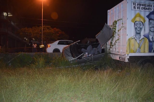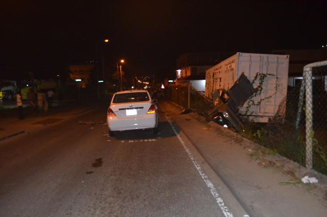 As a result of the collision the M-7486 continued traveling forward destroying a wire fence and hitting into a container. The three occupants of this vehicle remained trapped in the vehicle and the Fire Department was called in to have removed by using the “Jaws of Life”. The passengers of this vehicle were treated on the scene by paramedics and then taken to the Sint Maarten Medical Center for further treatment. After being treated by the emergency doctors the victims were admitted to the ICU for observation.