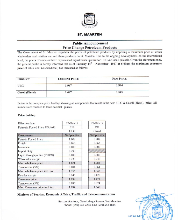 Gasoline Price Change 14 Nov 2017