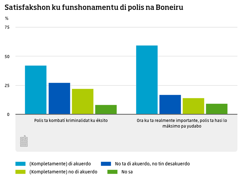 Kasi 60 porshento tabata di akuerdo ku e ponensia ku polis na Boneiru lo hasi lo máksimo pa yudabo, ora ku esei ta realmente importante. 14 porshento no tabata di akuerdo ku esaki.