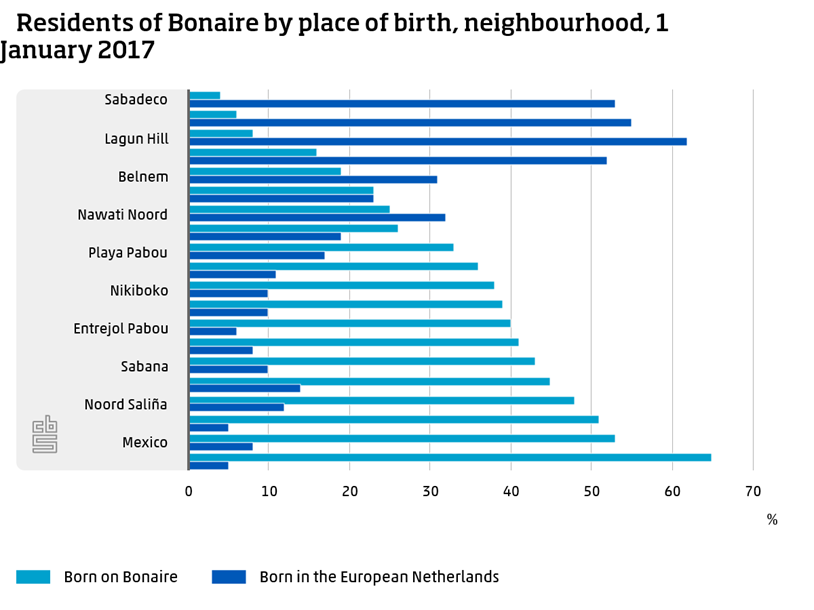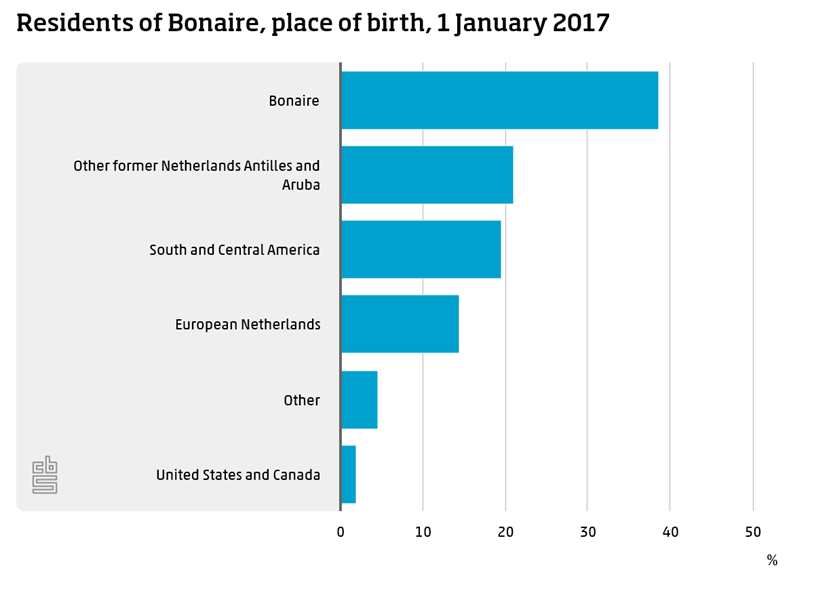 As medical facilities on Bonaire were limited until the 1990s, pregnant women were often referred to the neighbouring island of Curaçao for medical attention and delivery. This could be an indication of the fact that residents born on Curaçao (18 percent) make up the second largest group on Bonaire.